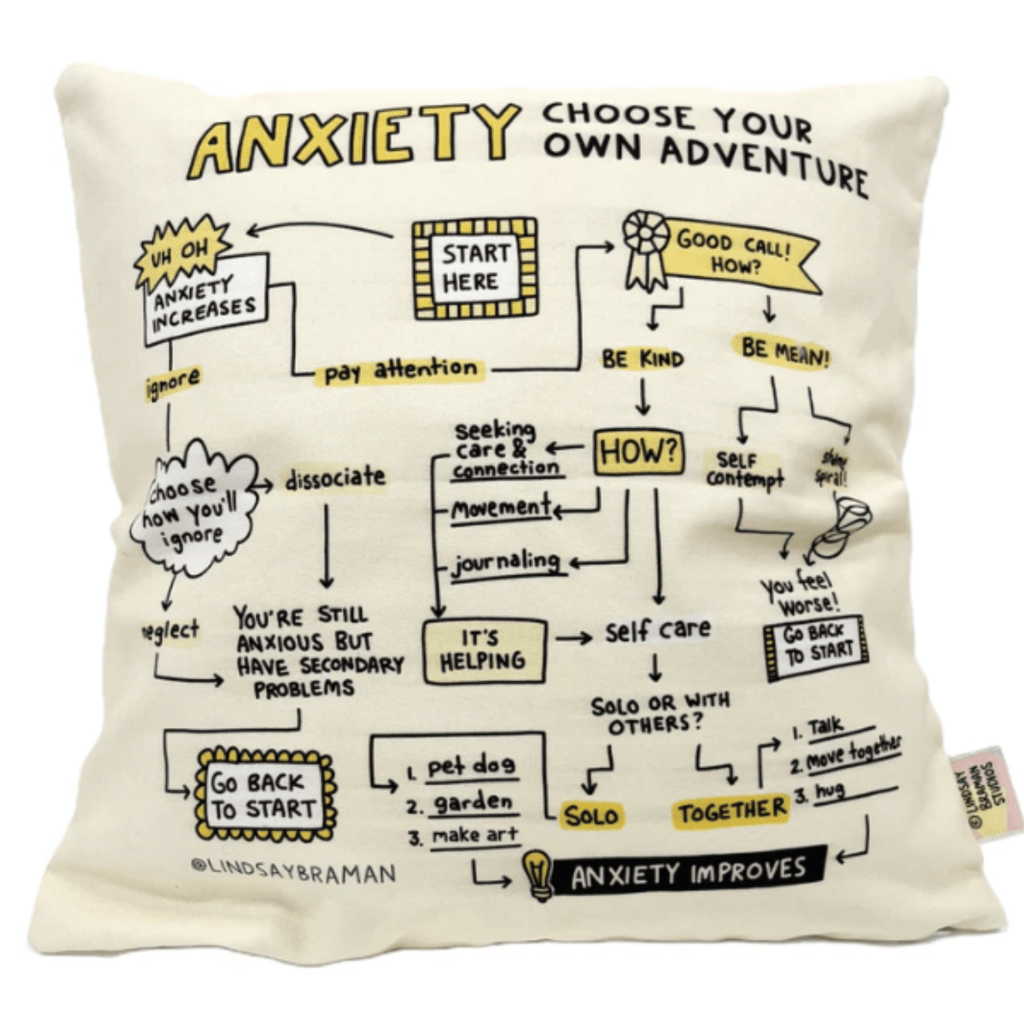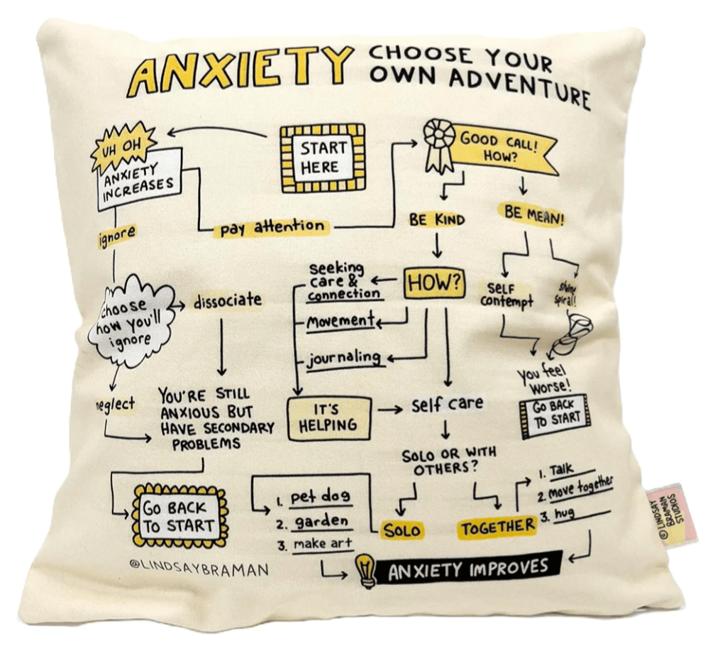 I discovered this brilliant counseling tool created by Lindsay Braman, which illustrates a decision tree to help you navigate making choices during moments of anxiety.